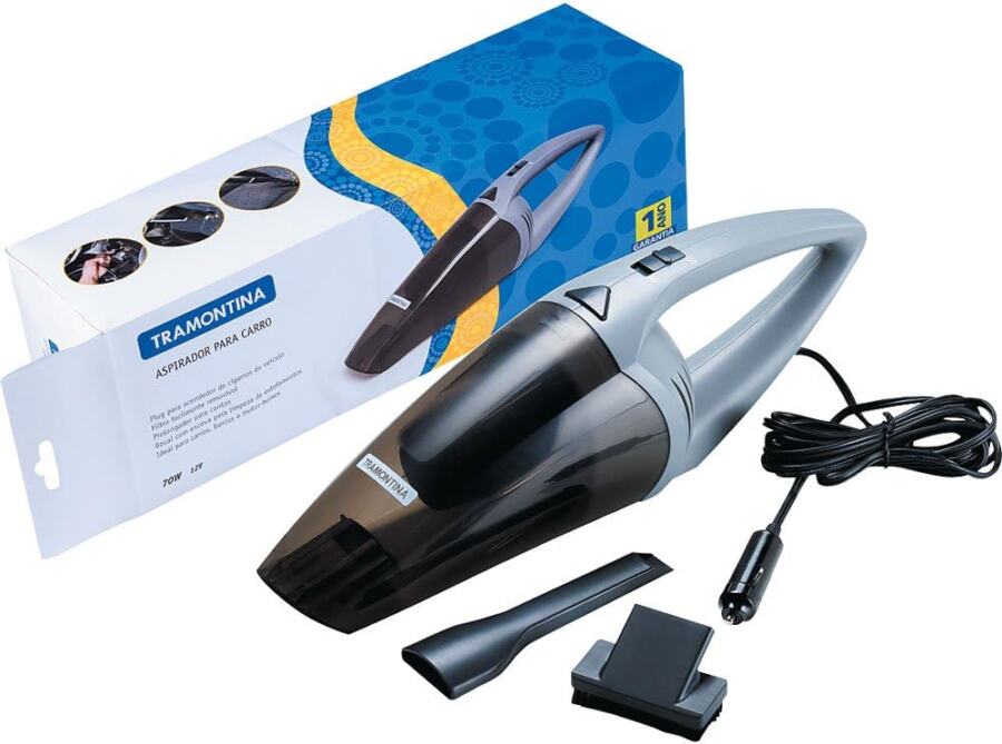 O aspirador da Tramontina é bem útil para quem passa boas horas do dia dentro do carro. Eu tenho o meu e funciona muito bem para tirar aqueles farelos que ficam pelo veículo. Não espere super potência, ele faz o serviço a que se propõe. Só dá mais trabalho nos vãos dos bancos, mas faz o serviço. Funciona ligado na tomada de 12V do veículo.