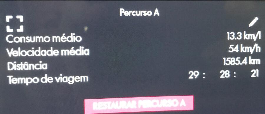 Tela do computador de bordo do Fiat Pulse após 1584 quilômetros rodados (foto: Renato Fonseca/ Turboway)