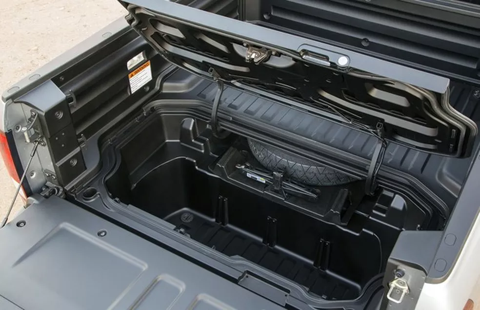 Sobre o som, aliás, a Ridgeline tem tomadas 110V e até falantes na caçamba. Quem diria que um carro de uma marca japonesa já viria assim, pronto pro churrasco? Ela ainda tem controle de tração, alinhamento de faixa, assistente de frenagem, monitor de pressão dos pneus e seis airbags.