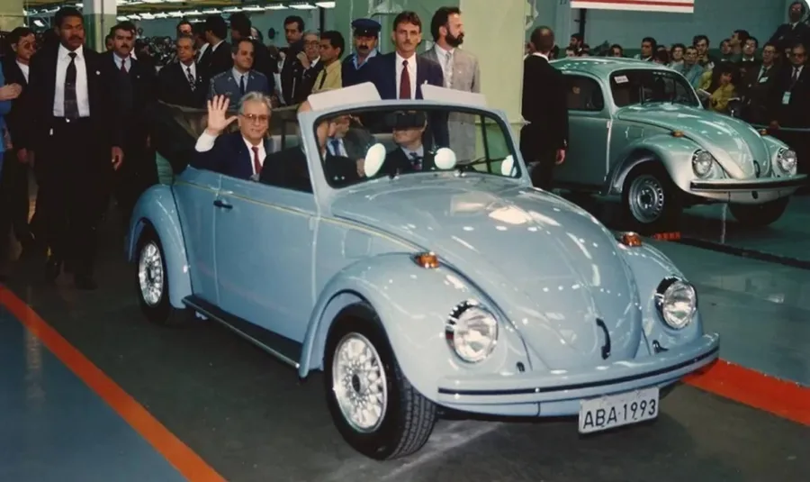 Mas a cena mais emblemática foi mesmo a de Juscelino Kubitscheck. JK também desfilou em um Fusca conversível, mas na ocasião da chegada do modelo ao Brasil, em 1959.