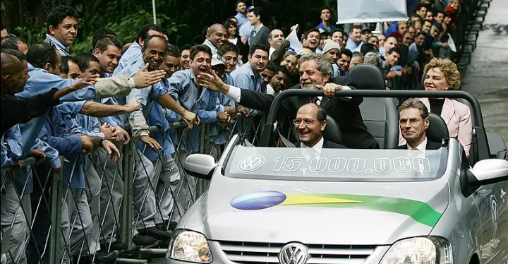 A primeira vez de Lula foi em 2003, logo no primeiro ano de governo, em visita à mesma fábrica. A bordo de um VW Polo conversível, ele participou das comemorações dos 50 anos da Volkswagen no Brasil. Dois anos depois, em 2005, ele desfilou a bordo de um Fox conversível, em comemoração aos 15 milhões de carros fabricados em São Bernardo do Campo. A cidade do ABC Paulista é o reduto eleitoral de Lula.