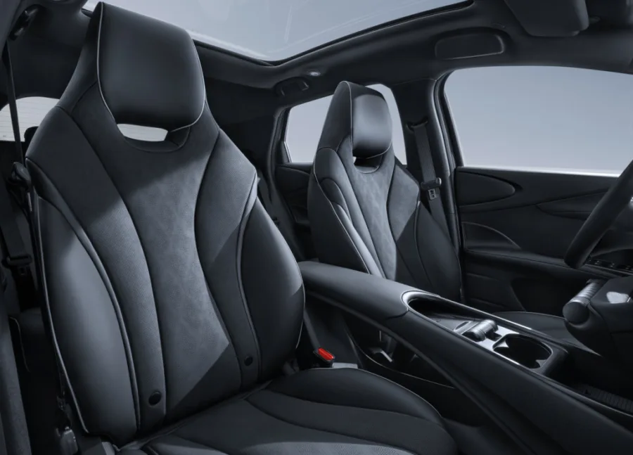 No interior, carregador de celular por indução, piloto automático, bancos com regulagem elétrica, assistente de faixas, leitor de placas de velocidade e auxílio de frenagem. O carro obedece comandos pré-estabelecidos no aplicativo disponibilizado pela marca.