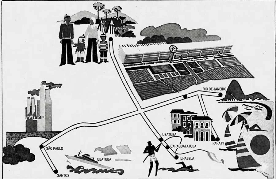 A revista exaltava a qualidade de vida em Taubaté e a proximidade com Campos do Jordão e belas praias, como Rio de Janeiro Ubatuba e Parati. Um ponto é que no mapa publicado o Rio de Janeiro ficava muito próximo da unidade, o que não é verdade, principalmente considerando a distância que São Paulo está no desenho.