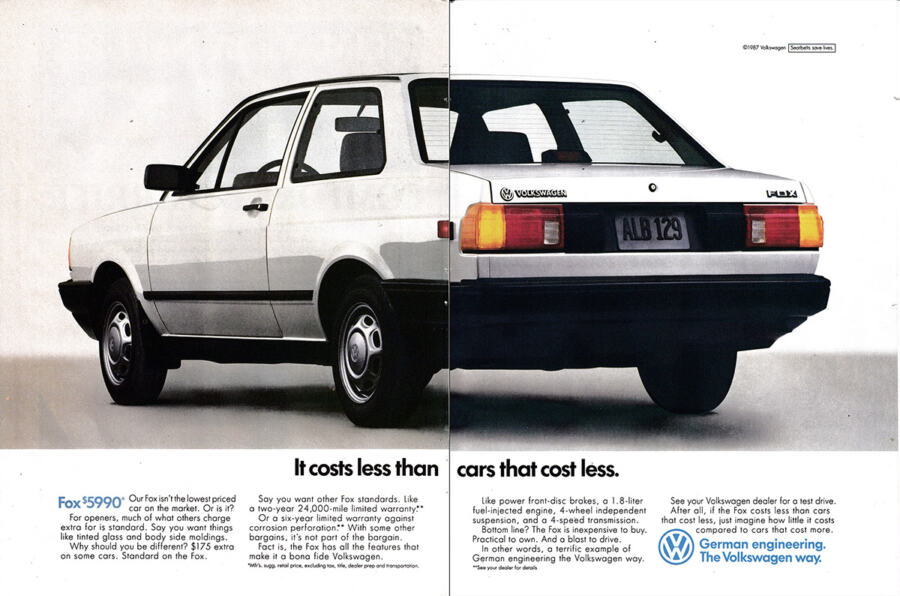 Propaganda do "Volkswagen Fox" que era o Voyage produzido no Brasil (foto: reprodução)Enquanto o Golf era vendido em 1987 por US$ 8 mil, a sul-coreana Hyundai oferecia o Excel por US$ 6 mil. O Excel chegou ao Brasil em 1991 e teve poucas unidades vendidas por aqui.