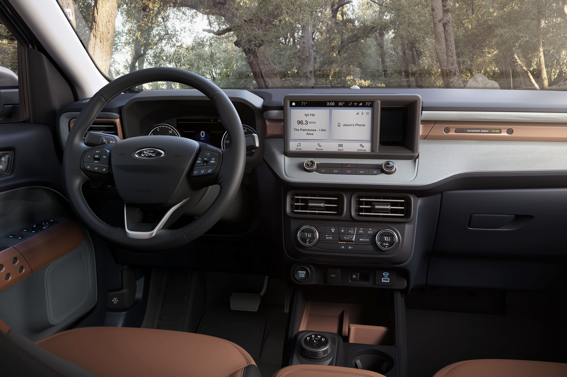 O visual da Maverick foi inspirado na linha de picapes mais vendida no mundo, a F150. Não a toa a frente segue a nova linha F150 disponível nos Estados Unidos, inclusive nos leds dos faróis. Esse desenho será visto também na Ranger por aqui, que terá novo visual a partir do ano que vem. Apesar das inspirações na F150 e na Ranger, a picape é fabricada sobre a plataforma do novo Bronco, que sai da mesma fábrica, em Hermosillo, no México.