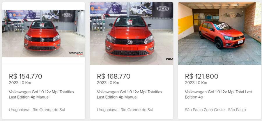 Anúncio de exemplares do Gol Last Edition no Mercado Livre (foto: reprodução)O Gol Last Edition foi produzido apenas na cor vermelha e a empresa reservou 650 unidades dele para o Brasil. As outras 350 foram vendidas em países vizinhos.