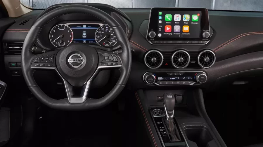 Interior do Nissan Sentra mexicano (foto: Nissan/ divulgação)No México o Sentra é vendido em versões manual e automáticas. O veículo tem boa oferta de acessórios tecnológicos e deve chegar ao Brasil com um pacote que inclui sensores inteligentes para mudança de faixa e funções autônomas.