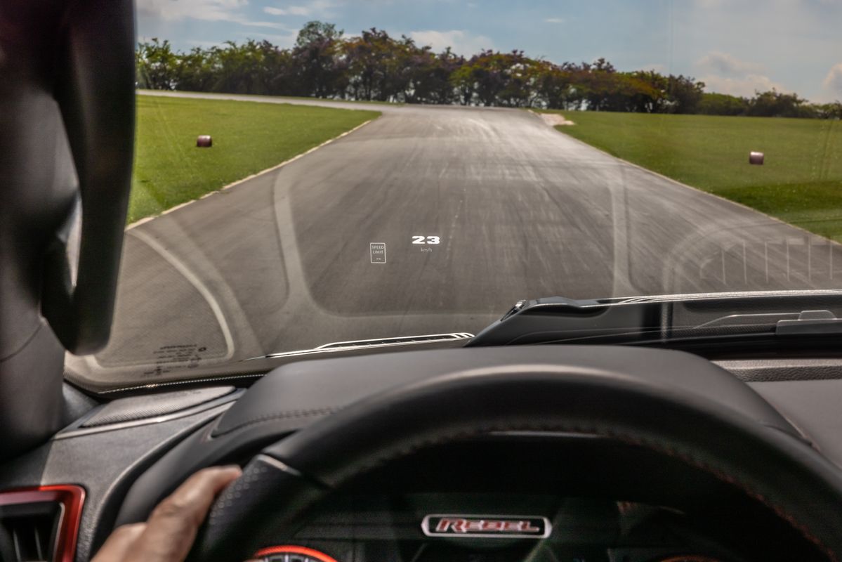 Head up display mantém olhos do motorista no trânsito - foto: divulgação/FCAAs pré-vendas começaram nesta quinta-feira (10). Os 100 primeiros interessados terão que reservar o modelo por meio de um sinal de R$ 20 mil, que serão deduzidos do preço final. Detalhe, a pré-venda é apenas da picape com opcionais que elevam o preço para R$ 419.990. A versão mais barata, de R$ 399.990 só será oferecida mais adiante. As primeiras entregas serão feitas a partir de abril de 2021.