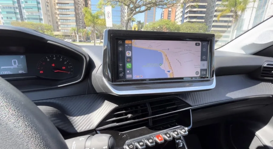 Central multimídia do Peugeot 208 (foto: Renato Fonseca/ Turboway)A versão 1.6 Active que rodei é ano 2022 e tem pacote intermediário (e ok) de equipamentos. Tem rodas de liga leve, ar-condicionado digital, central multimídia, assistente de partida em rampa. É um carro legal de dirigir, principalmente com a experiência do volante de raio menor utilizado pela marca.