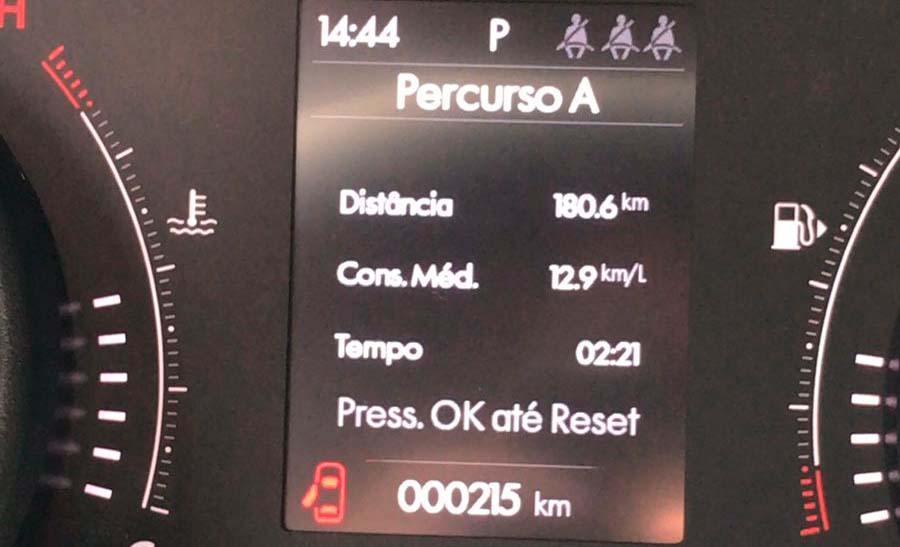 Contando apenas os primeiros 200 km, só em rodovia, a marca atingida foi de 12,9 km/l.