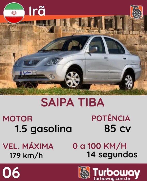 Saipa Tiba na versão sedã é o carro mais vendido do Irã (foto: Saipa/ divulgação)Aqui temos um legítimo iraniano. O Tiba foi colocado no mercado iraniano como um carro popular, com a mesma função que Uno e Gol tinham aqui no Brasil na década de 90: vender um monte e deixar o povo feliz com carro novo.