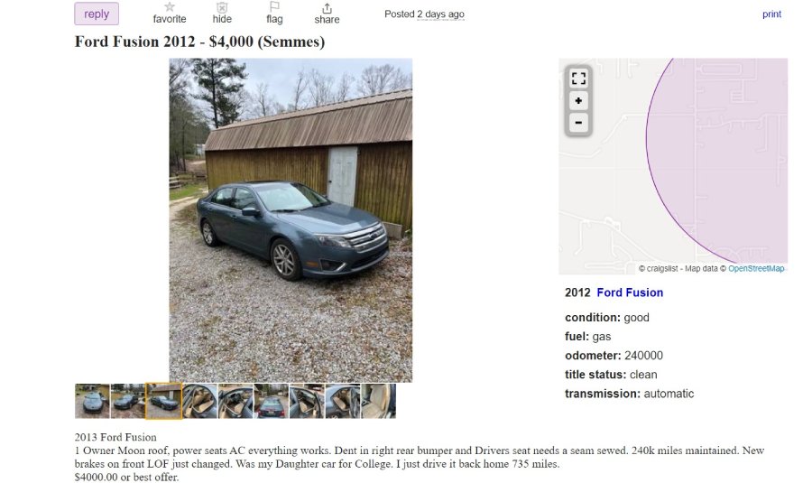 Aqui no Brasil, você acha um Ford Fusion 2012 custando na faixa dos R$ 40 mil. Mas que tal pagar 4 mil dólares, o equivalente a 3 meses de salário mínimo? É o que dá para pagar neste modelo anunciado nos EUA.