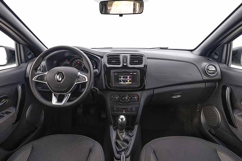 Novo Sandero S foi lançado pela Renault em novembro (foto divulgada pela Renault) O carro traz direção eletro-hidráulica, travas elétricas, quatro airbags (frontais e laterais), freio ABS, sistema multimídia com tela de 7 polegadas, quatro alto falantes, espelhamento de tela através de sistema do celular, sensor traseiro de estacionamento, ajuste de altura no banco do motorista.