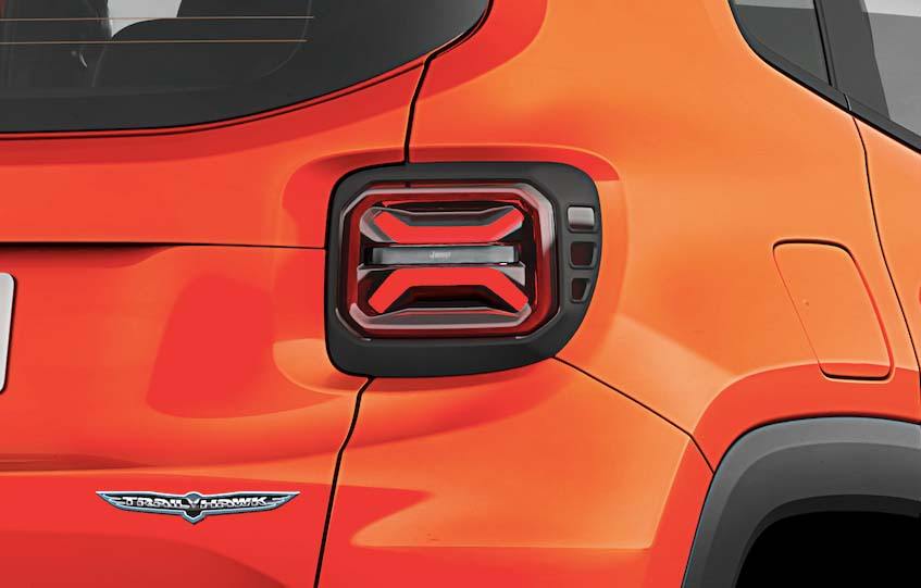 O primeiro impacto na imagem divulgada pela Jeep é o retorno da cor laranja, que até hoje só existiu no lançamento do carro, em 2015. Na frente o Renegade terá a grade mais estreita. As luzes diurnas saíram do para-choques e agora acompanham a lanterna principal.