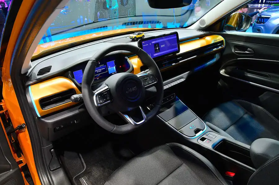 O Baby Jeep terá baterias de 54kWh, que dão de 400 a 550 quilômetros de autonomia, a depender do tipo de uso. A recarga de 20 a 80% é feita em 24 minutos em um cabo de 100kW.