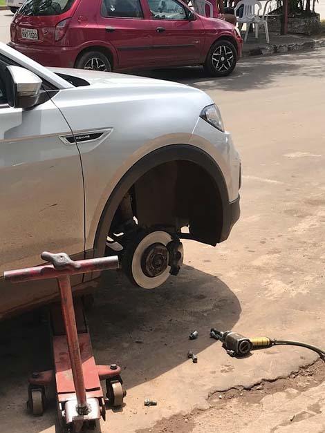 Tarefa perigosa foi trocar o pneu em uma rodovia com acostamento estreito (nos trechos onde ele existe) e em plena escuridão. Nenhuma tarefa impossível, mas que seria muito mais tranquila em um local com estrutura mais adequada. Estepe de emergência colocado, corrida de volta para São Luís. O único borracheiro encontrado aberto no caminho condenou nosso pneu, o que foi confirmado no dia seguinte em São Luís.