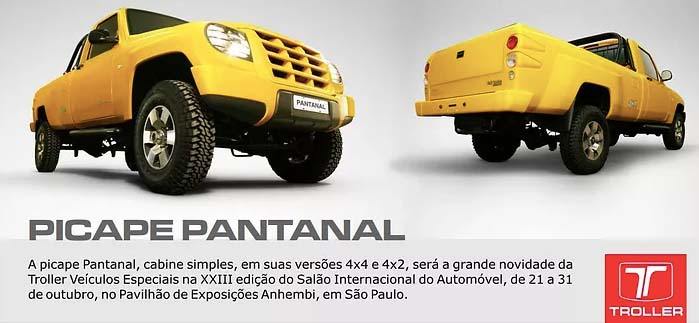 Primeira geração do Troller T4 (foto: divulgação)Em 2006 a Troller deu um passo em falso. Resolveu diversificar a linha produzindo uma picape, a Pantanal. Era o projeto do jipe com chassi alongado em uma picape "raiz", praticamente um sucessor da versão picape da Toyota Bandeirante.