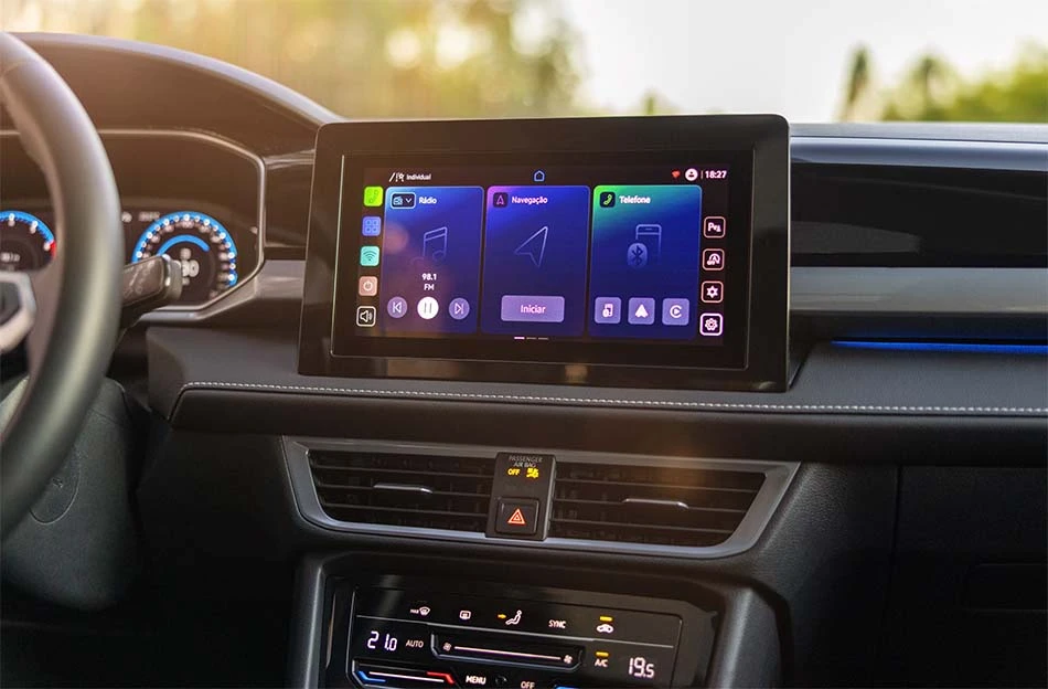 Interior com novo desenho do Volkswagen Taos 2026 (Volkswagen/divulgação)A marca não mexeu no motor. Segue o mesmo 1.4 turbo, flex, com injeção direta. É o mesmo motor que está no T-Cross, que já passou dos R$ 200 mil. Esse motor rende 150cv de potência máxima e 25,5 kgfm de torque. O câmbio das duas versões é automático de oito marchas.